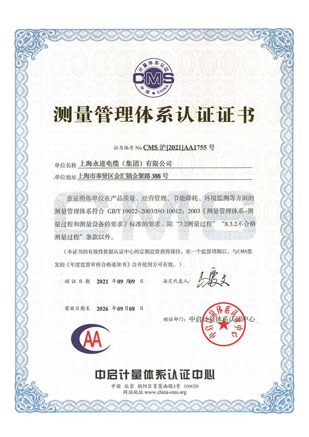 測量管理體系認(rèn)證證書